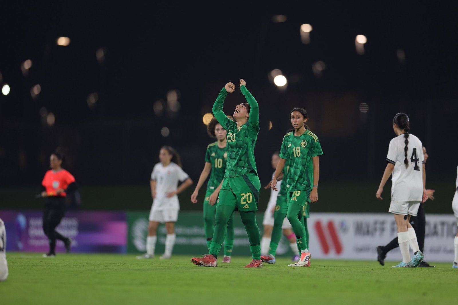 وفي الوقت القاتل، تمكنت أميرة أبو السمح من تسجيل الهدف الثاني للسعودية عند الدقيقة 90+5 بعد هجمة مرتدة سريعة، وسط دعم جماهيري كبير في مدرجات الجوهرة المشعة.