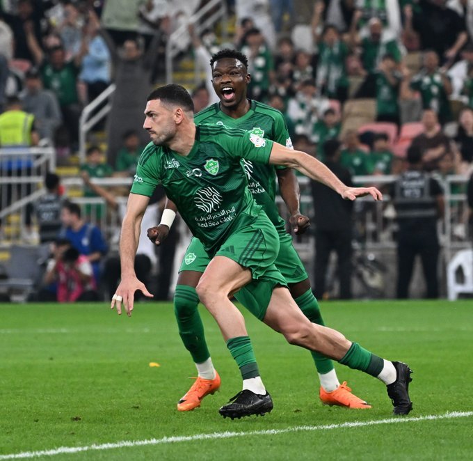 وتمكن المدافع التركي ديميرال من تسجيل الهدف الثالث للأهلي في الدقيقة 55، بعد استلامه لعرضية متقنة حولها برأسه داخل شباك النصر.