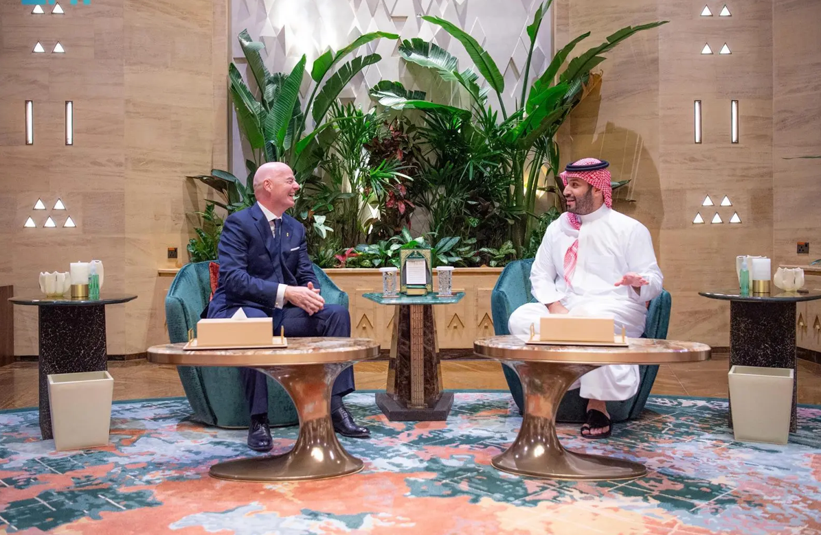 التقى الأمير محمد بن سلمان بن عبدالعزيز آل سعود، ولي العهد رئيس مجلس الوزراء، في مكتب سموه بقصر اليمامة في الرياض اليوم، رئيس الاتحاد الدولي لكرة القدم السيد جياني إنفانتينو.