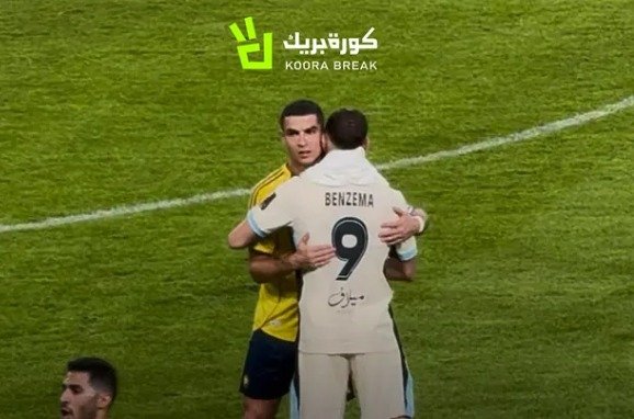 ووثقت عدسة «كورة بريك»، لحظة توجه كريم بنزيما إلى رونالدو عقب نهاية اللقاء؛ حيث حرص بنزيما على التوجه مباشرة نحو رونالدو لمصافحته وتبادلا الابتسامة والعناق في مشهد مليء بالاحترام والود.